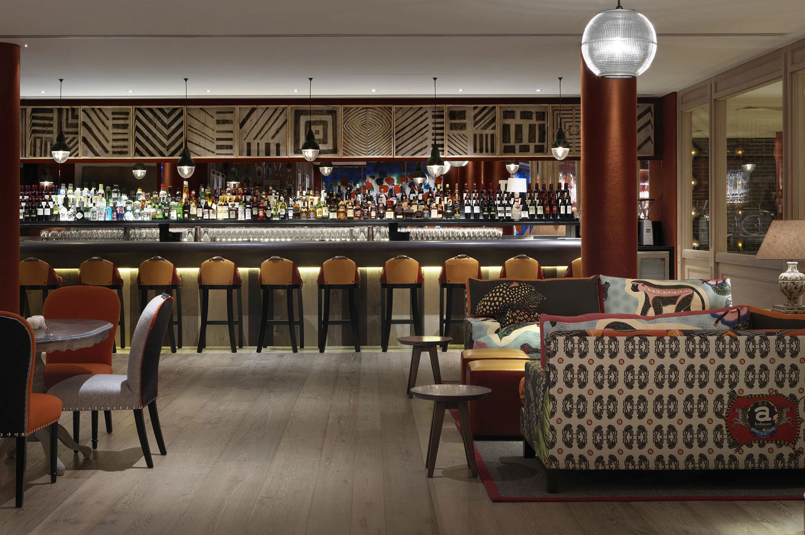 Imported from Texas and manufactured by the Brunswick company, our fully functional alley features monochrome bowling ball returns making it a natural anchor for the space, as well as being ideal for interactive events. To complete the picture, back-lit bowling balls, vintage bowling shoes and bowling pin lamps sit alongside two large-scale Howard Hodgkin artworks.